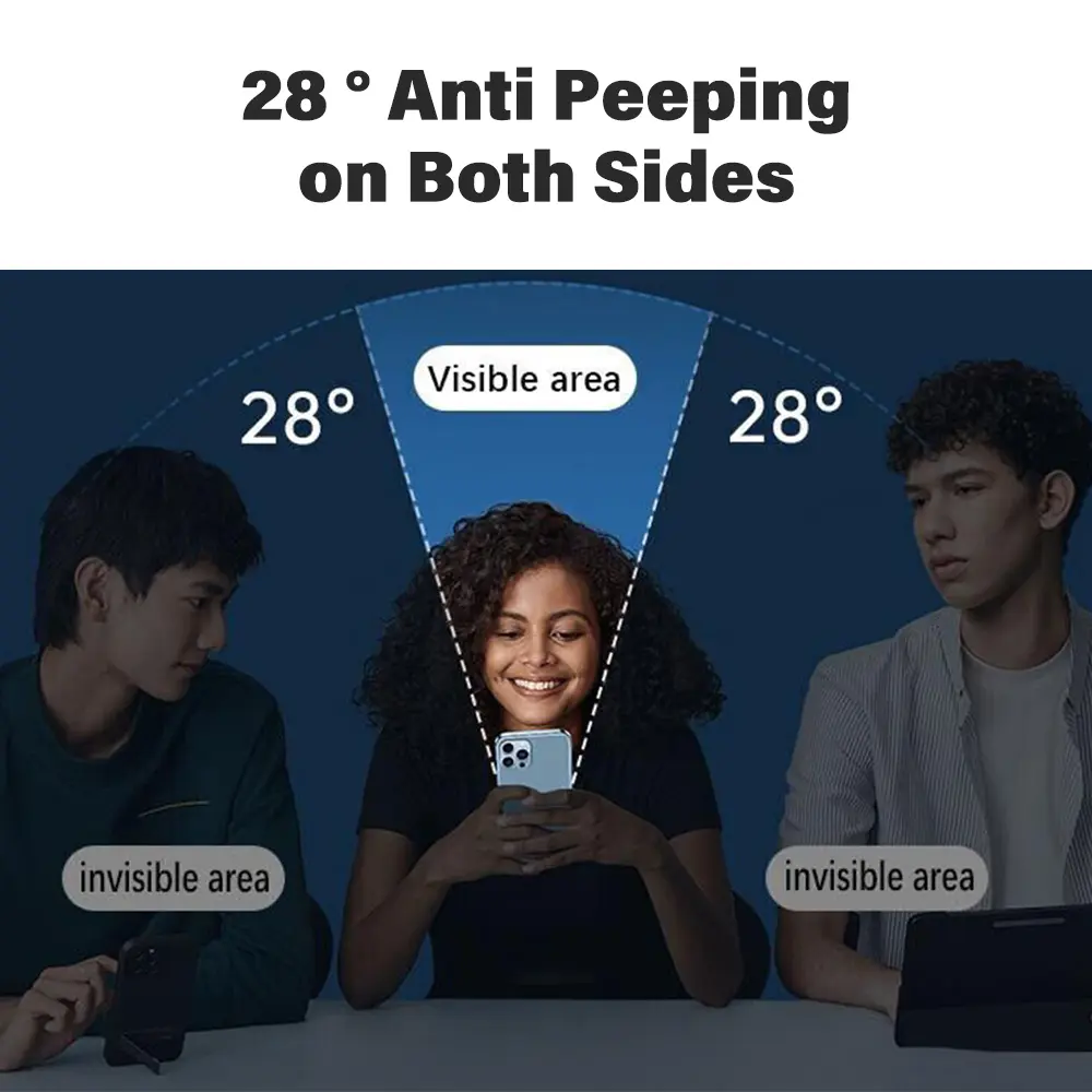 The content of the screen cannot be seen beyond 28° from the left and right sides, effectively preventing bystanders from peeping and protecting your privacy and security.